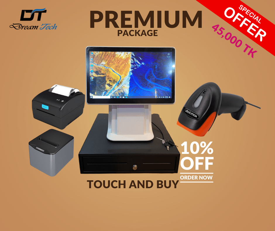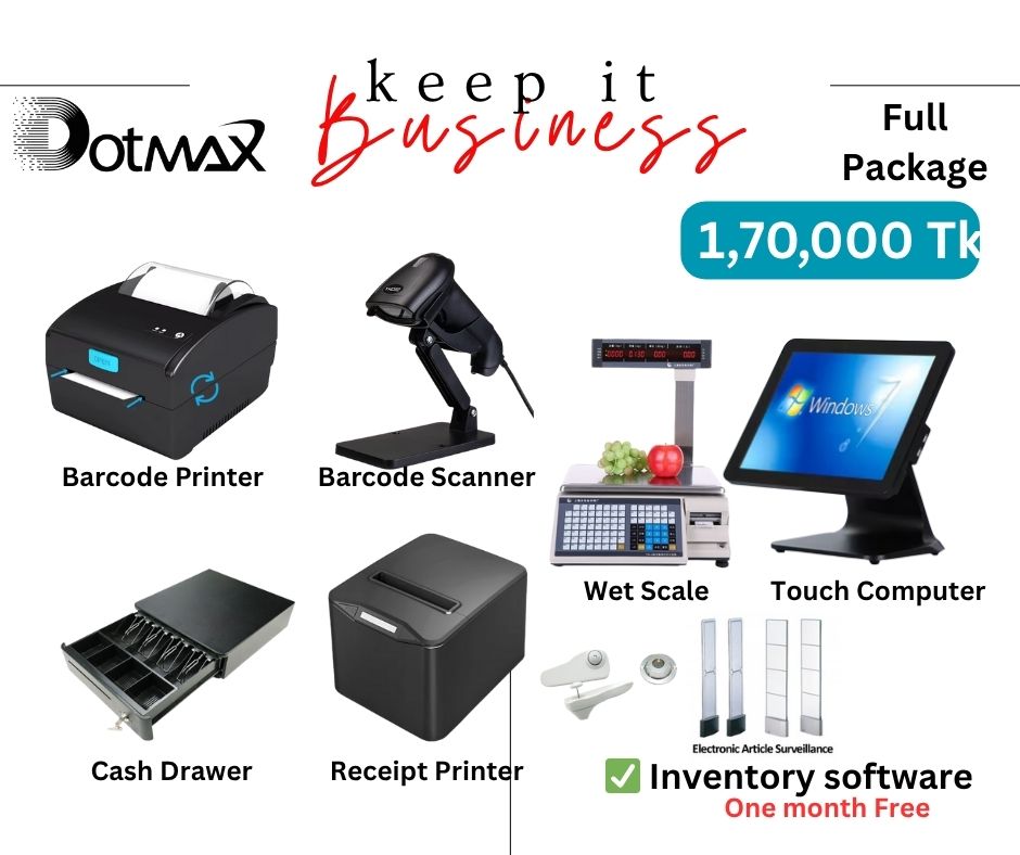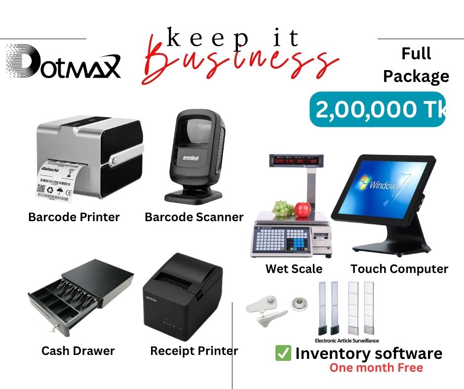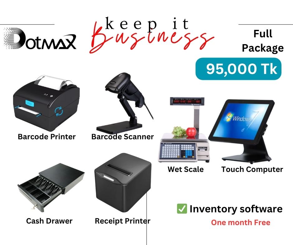 Barcode Printer + Receipt Printer+ Barcode Scanner + Stand + Software 1(One) Month Free.